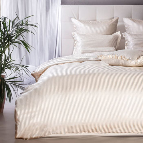 Unsere 100% Maulbeerseide minimiert Reibung, beugt Schlaffalten vor und bewahrt die natürliche Feuchtigkeit deiner Haut über Nacht.